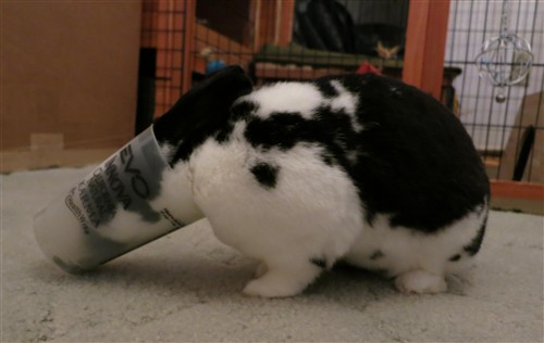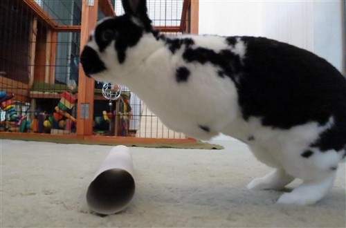 So the new cat tunnel took awhile to adjust to, first there was avoidance, then a couple walks thru… followed by (3hrs later) angry thumping.  The bunny 500 around the pen today was a little scary with the added crinkling, got another thump for that, which was then followed by many failed attempts at redecorating!