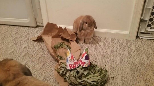 Hoppy birthday bunnies! The cupcake hat made my morning. I will be sharing those pics with the hubby. Enjoy your treats!