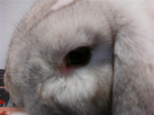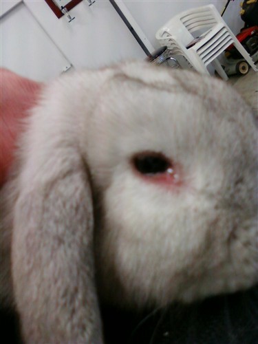 Flopsy eyes are definitely red- youch! as Jerseygirl mentioned you can use a warm wet washcloth or cottonball to gently clean the eyes and that can help with external irritation around the eyes since it looks like the eyes are a bit watery in reaction to inflammation.