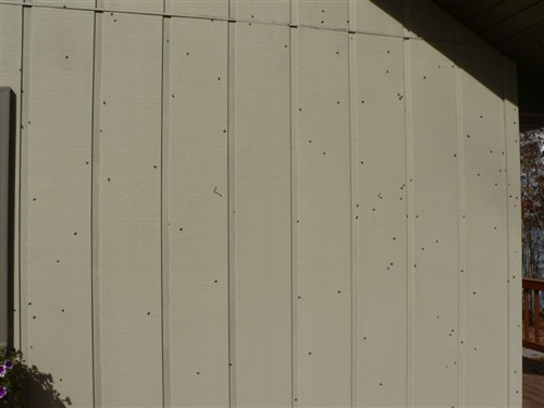 I think the flies liked the sun, because they where on the garage and on the deck.