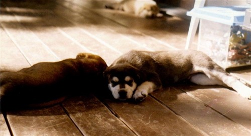 And here’s Taiku, his son, only about 8 weeks old. He’s butted up against one of his sisters and you can barely see my daughter’s old dog, Willow, in the background.