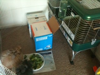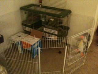 Yes, that was actually my project for this week. I just bought an xpen that will add about 9 square feet to their space. But I have to move where the cage is currently so that the xpen doesn’t wind up in the middle of the floor blocking off the living room from the kitchen. ![]()