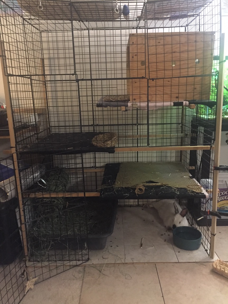 That one looks really nice! I’ve been looking into condos too because I’d like to make one for my buns once they’re bonded, not as a living space but open all the time for enrichment. I think I’d make mine using the cube connectors, because Esther chews zip ties.