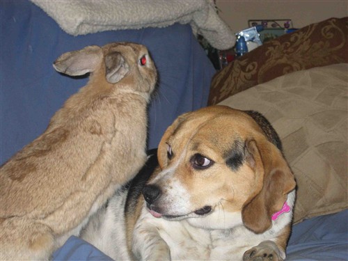 A really kind of odd side note about the dogs- Both Molly and Sage are beagles, from the same litter actually. But arent beagles naturally for hunting rabbits? I thought they were at least and when I brought Hammer home I was a bit worried and thought id have to make sure they never even saw him. Anyways the litter was my moms boyfriends dogs. I fell in love with Molly and kept her. Sage was the only puppy left and he brought her over for us to watch while he was on a trip, Molly and Sage bonded and I couldnt stand to do that to Molly so now we have Sage too, but she is really his dog. Well even though im completely against it and we fight about it all the time he hunts rabbits with his dogs. I wont allow Molly to go, but Sage I cant stop. Well turns out Sage is now bunny friendly and cant hunt rabbits! Living with them has completely turned off her instincts and she just doesnt get what she is suppose to do. How cool is that!