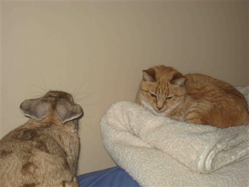 Lol yea Hammer is always wanting to disturb someone and get up in their face. Toluz especially because he tolerates it so well. I see Toluz as Fonzie from Happy Days, cool calm and relaxed. Toluz actually does summersaults when you pet his head sometimes, awesome cat.