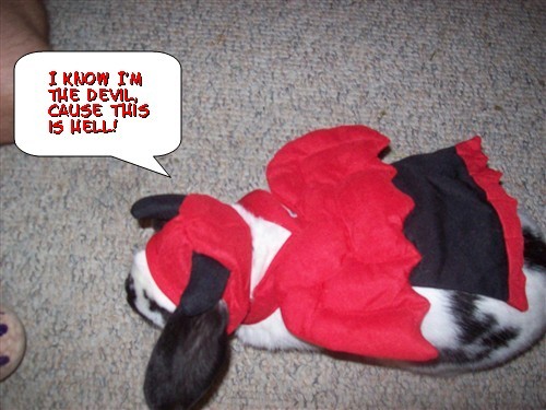 I wouldn’t dare put a costume on any of my bunnies. I like the flesh on my arms where it is, thank you. 0_o