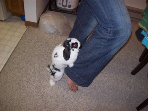 Here’s a funny pic…not kidding you — turbo bunny came running out of no where (she had been hiding all day) and started humping my LEG! Never before has she humped our legs! Just arms! She just atttacked and latched on! I’m amazed we got a pic before she gnawed my leg off! (she bites….HARD….when she humps!) LOL…..Nov. 12 can’t come soon enough…..