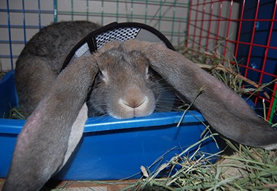Beka – That’s a really interesting idea! A girl on the HRS Facebook group said she used a small dog tank top for her female E-Lop and it seemed to protect everything well enough. I’m sort of collecting ideas because even if in the end I don’t have to use anything for them because of the spay/neuter there is always a chance in the future I’ll need to keep them from chewing/picking at something. The ears do provide a bit of challenge in the e-collar related department.