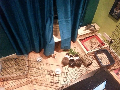 The main problem I’m having now is that they wake up every morning at 3-4am and start going mental on the cages of their pen. Rufus especially will dig and dig and dig and bite the wires until we either feed up to shut him up (although he goes straight back once he’s finished) or he’s been let out. Ideally I would love to let them out because they like to flop all over my bed, but I just can’t when they’re going to the loo all over it. I’ve already been through 4 pillows, 2 duvets, 1 blanket and 2 mattress toppers. My boyfriend and I are at our wits end when it comes to being woken up, there is literally no way of shutting them up properly and the noise is so loud that my mum often hears and complains too.