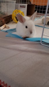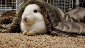 This is my baby bun, Thumper! He’s about 8-9 weeks old now. Sorry for his ickypaws, he unfortunately was being kept in poor conditions in a cage with wood shavings before I acquired him which caused his fur to become pee-stained and I have no idea how to clean it off 🙁