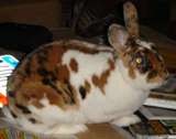 Anyways, he was young when the family that we assume bought him dumped him out. A member of HRS happened upon him just sitting looking confused underneath someones car. He allowed her to walk right up and pick him up. This lady and her family already had 5 rabbits and several cats.