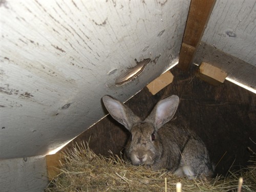 Well, I did find him. In the hay house which is on the deck, but closed to rabbits. It is jampacked with 40-lbs bales for the winter but he got inside and up there…