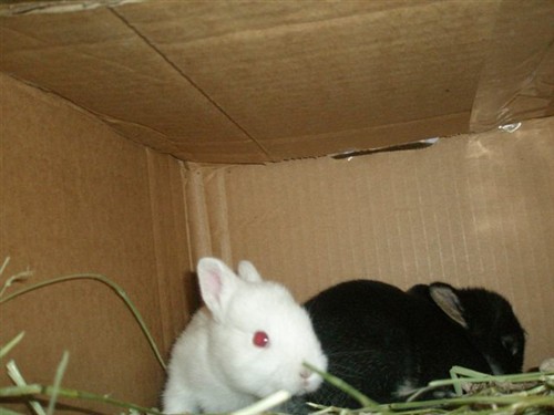 theyre soooo cute!!!!white one reminds me of my bunny Chace when he was a baby.good luck with them.keep posting photos.theyre adorable.