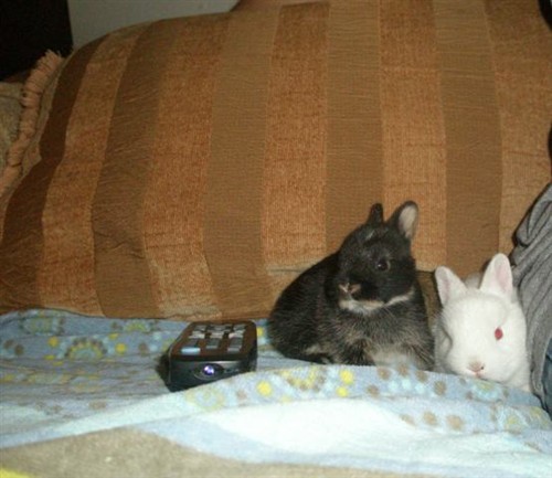 OMG!! jerseygirl that was so cute and sad to see those sick bunnies there. That is EXACTLY what zoe did i should have recorded. Oh and guys im glad to say that they are pooping, they lick eachother’s bottom and i guess that’s what does it. they are TINY little droppings though. LOL! Zoe will lick them now and then too. I think i can see more of their dropping now, since they are eating solids.