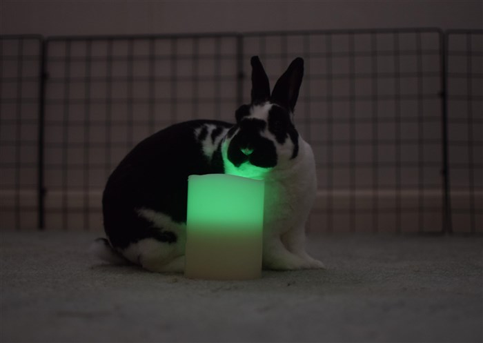 And this is my sad attempt at getting a bunny holiday picture. Would have been better with all three candles, but I didn’t have enough batteries.