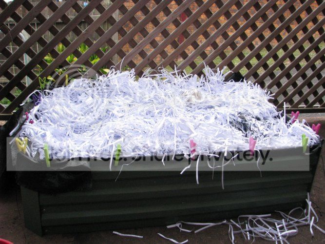 This is going to be my vege/bunny garden. I’ve had the frame for a few weeks and today I bought 10 bags of potting mix and 1 of compost to fill it in, I then put a heap of shredded paper on the top to keep in the moisture until I get to planting.