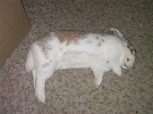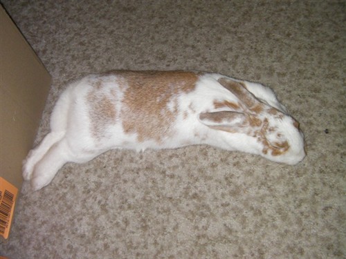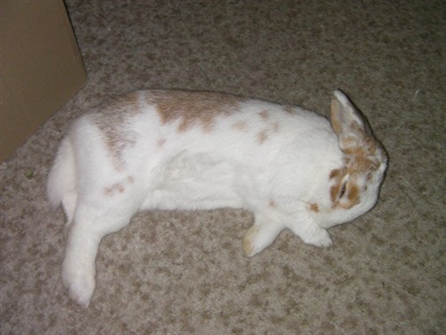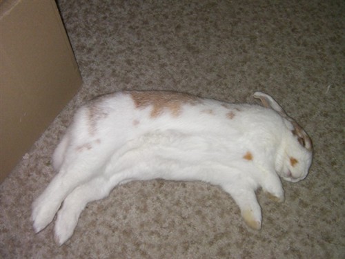 I would really freak out if I saw my bunny like in the first picture! Mr. Bunny hardly ever flops, and when he does, he keeps the head up.