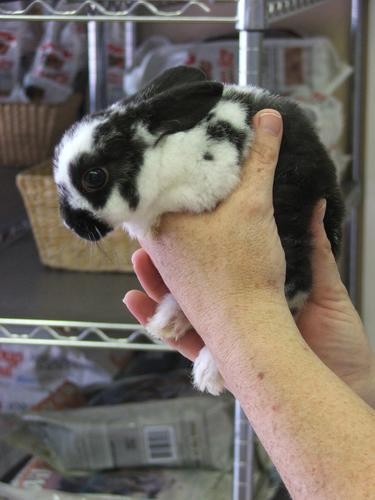 Yeah so I did something very bad. I told my husband I wanted to play with the bunny at the shelter. OMG she is so cute! She was sitting in my lap to start. The lady said the poor thing keeps getting passed around every time a school group comes in. Anyway, she was grooming my arm while I held her and let me pet her. I put her on the floor and she quickly started running around and exploring. Hehe, she nibbled my purse and my husband’s shoes. Then the lady had a little bit of trouble getting her again. =p Such a sweet bunny. They said we could bring our rabbits there to meet her. I don’t know though. I mean, we would have to do a lot of rearranging to house a 3rd rabbit. My husband is hesitant. He said she was nice and would probably find a home before we would make it back (which I suppose is okay with him).