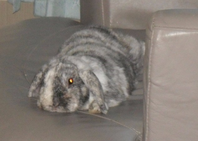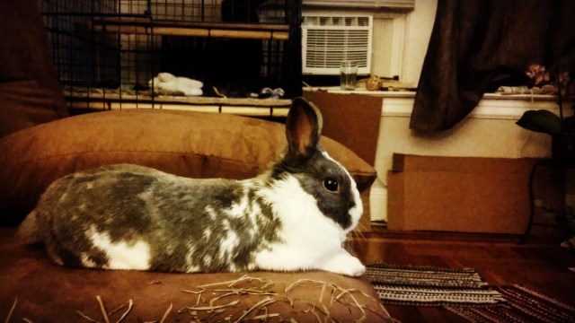 And Sterling very much enjoying being a house bunny. Last night, he hopped up on the couch and flopped. I’ve never had a bunny lay on the couch before. He is just loving it!