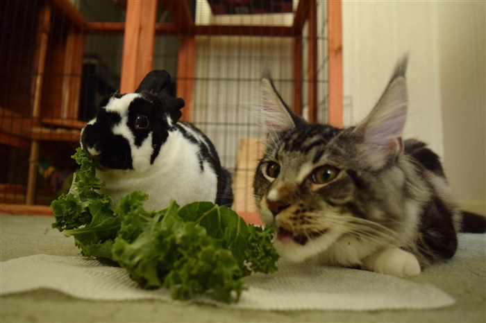 Also, what a sweet looking little bun, and your cat is gorgeous too!