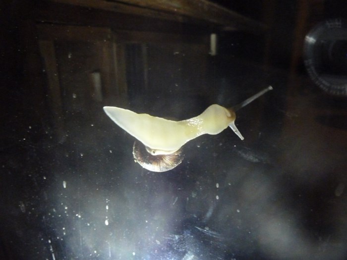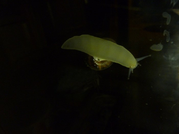 Mr Snail decided to up patio window last night so had brill view of his underbelly…. ok underfoot… and with amateur mobilephone torch lighting I (sort of) captured his wavy transportation muscles…. some will say wow!, some will say blurrgghhh. ![]()
