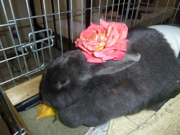 Vienna: she does look good wearing that rose. My buns refuse the flowers, they only want the rose greens. Which is silly because a bun eating a flower is a gorgeous sight.