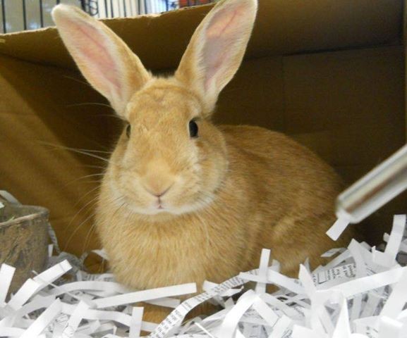 How big is she, Diane? With those ears she might be a flemmie or NZ cross…or she could be part palomino (a breed originally bred for meat ), my Pip is a palomino/lionhead cross…she is that same color.