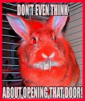 “Stop it! That’s it you are going to the shelter! I’m putting you up for adoption! I’m setting you outside into the wild! I’m taking you to the lucky rabbit’s foot factory!”