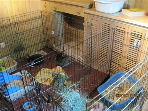 When I had alot of rabbits I had a very large room like your 11 x 12 and a small 8 x 8 – the 8 x 8 fit 5 of the Leith Condos because they were built up and didn’t take much floor space. A pen is not going to be an ideal situation in your 9 x 9 room.