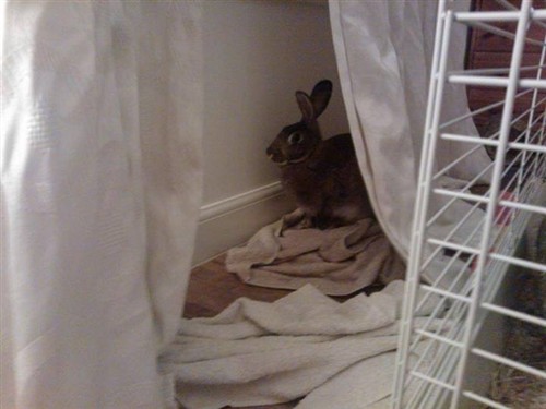 Navi has gotten into the habit of dragging towels, blankets or even, as I caught earlier, the throw off the back of the sofa behind the curtains… She’ll then happily spend the day behind there, quite happy.