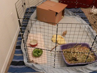 He’s also in a cage right now, but I will be changing it to a pen, so he has more space to play later this week. If I start to re litter train him, will I have to start again once I change his space?