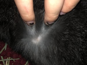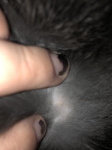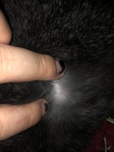 I was rubbing my bunnies belly and I felt a little lump. I dug through his fur and was able to get a picture. He doesn’t seem bothered by it.. and was letting me rub his belly. Does anyone know what this might be? Cooper is a netherland dwarf and is less than 2 years old. Hard to see the pictures but I tried!