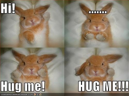 They’re great!!! I think the photos above, especially prevalent on the internet, make a good case for why so many people wind up wanting to give their child or children a companion bunny and purchase one, usually as a baby, from the pet store. Unfortunately, what the parents all too often don’t realize is that the scenario below is the result of months, sometimes years of love – patience, tolerance, care, reasearch, hard work, and self-discipline with the rabbit and letting it cultivate mutual affection on its own terms, at its own call, and sometimes only after months of being allowed to be a reclusive, fearful, mistrusting, even aggressive little creature given to nips and biting. The hugs one sees in a rabbit that has been allowed to become affectionate come long and hard. And because, they’re often expected on demand when the impulse to cuddle emerges in the child and parent with none of the carefully devoted expanse of patience, tolerance, and devotion, the relationship turns sour almost immediately and after a few weeks or months of deploring the animal’s aggression exacerbated by the owner’s sometimes failure to potty-train, the animal is no longer wanted and is let loose in a park to fend for itself and usuallly wind up mauled by a predator animal or starved, or left on someone’s doorstep to fates unknown or taken to an overburdened rescue shelter that euthanizes rabbits it can’t adopt in a timely manner. I love these pictures that are born of the hard work and continuous love of someone as much as anyone but I also know that chances are their publicity on places like utube, etc. will promote such unfortunate scenarios, or worse, the animal will be abused because it’s not found to be affectionate. Anyway, I thought it so doggone cute I couldn’t resist sharing it with you. Sorry, I didn’t mean to burden you with this sad story, most of you know it already, it’s certainly not my intention to be depressing. I just think that a disclaimer or such, accompanying such photos as might help to prevent some or a lot of misfortune that befalls these lovely little prey animals, that, CAN be such delightful pets and companions.