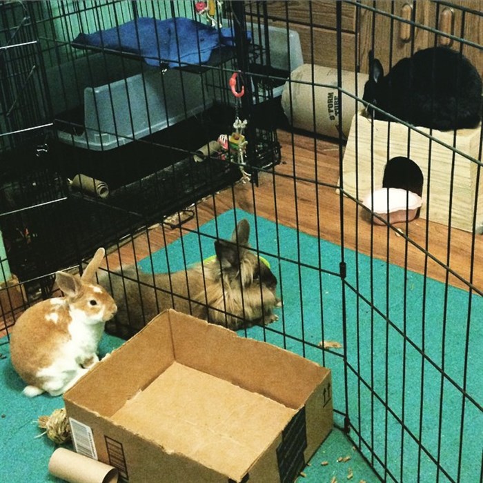 Also, I forgot how much rabbit pee smells when they’re not spayed/neutered. I’m using the same exact stuff I use in the trouble bun’s boxes and it smells absolutely horrible. Ick!