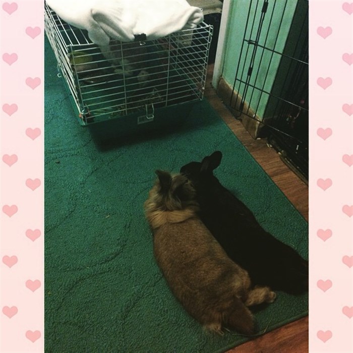 My friend came across a bunny who was being abused and this guy said he was going to shoot it so she basically gave him twenty bucks and took her, but between her girlfriend saying no, and the multiple ferrets she owns AND the dogs not liking her, she had to rehome her, so she came to me and well… Here we are. She really didn’t want to rehome her with anyone else and she knew I’d be the perfect candidate. I’ll be getting her this weekend probably. I am super excited! Once she’s spayed and healed, I’m going to bond her with the trouble buns.