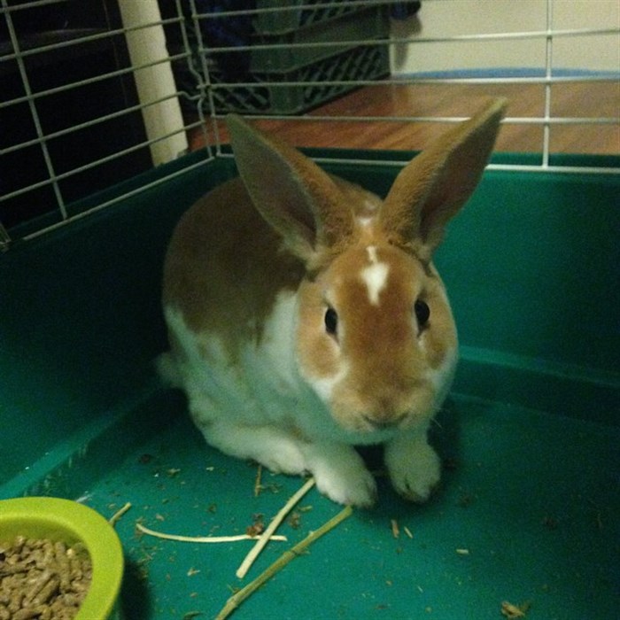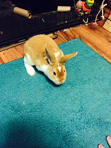 But, here’s more photos of the new trouble bun. (She keeps eating my carpet! Trip to the store is in the future to find something to cover it. ) Also, she keeps binkying into her bowls and knocking them over! The little rascal.  (EDIT: Also, I decided to try the xpen anyway, because Baby likes to rattle her cage bars.)