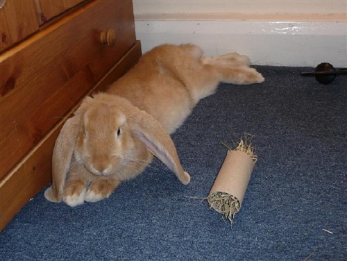 Dylan lounging. This was just after I’d upset him by brushing a sensitive spot, can you tell?! Took two days for him to come out of his funk – this morning he was hoppitying around my feet demanding a playmate!