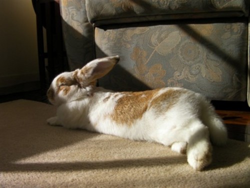 I don’t have any great lounging pics. My buns are very hard to capture on film, by the time my camera is ready they are doing something else.