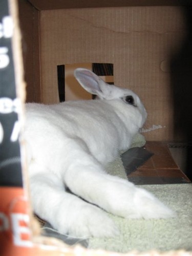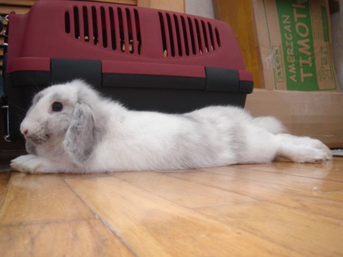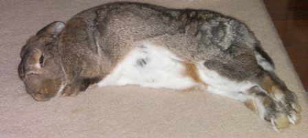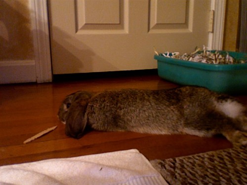 Our foster bun lounging about. I love how she sprawls out, she looks like a little frog with her legs out ![]()