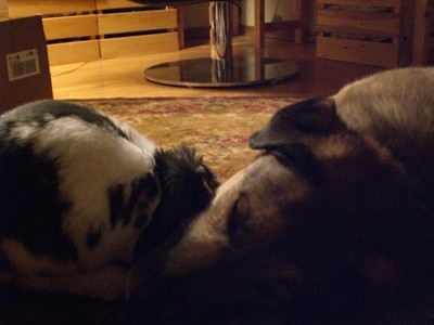 awww… cute pics of your buns! my late bun – baby - liked to cuddle with my dog
