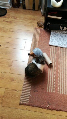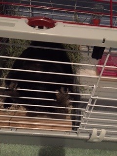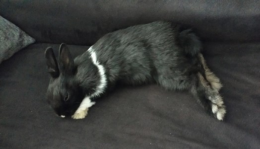 Today Breintje was in his (open) cage, and decided to destroy the cardboard flooring. He’s been at it all morning now: ripping, tearing, digging! When I walked over with my phone he did this really cute pose. Then he jumped out of his cage and started to run around the room. Our little bun has a bit too much energy for his own good lately ![]()