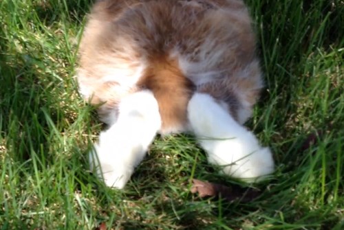 I dunno… he looks pretty chilled out to me. Must be that fuzzy tummy and cottonball tail ![]()