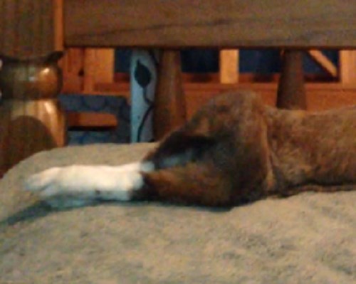Broke my heart when she did this. “Don’t go! Just call off work today.” (I let her out again and gave her a 5 min head pet before I left)