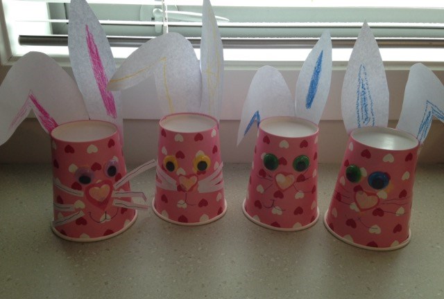 Aw! Will there be an Easter egg hiding under the cups on Easter morning?
