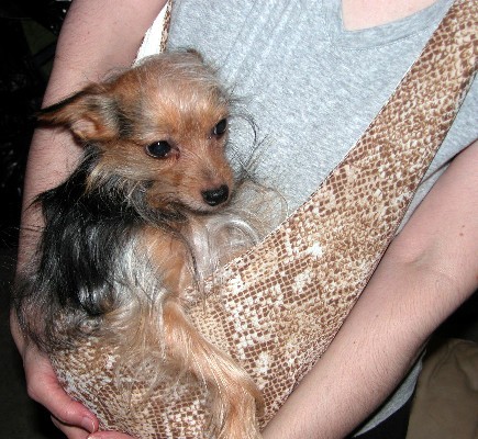 Lash, I got that pouch on Etsy. It really isn’t something I’d want to carry her in without holding on to it about the same way I would if I were just carrying her in my arms, but it makes a good snuggie for naptime.