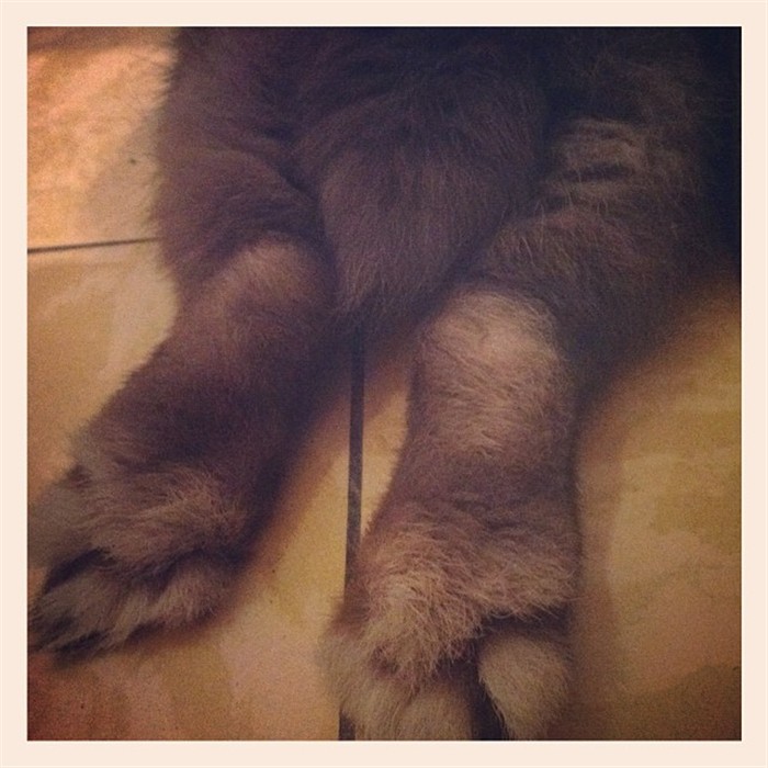 Bam got a stuffy the other day. He’s grooming it here
