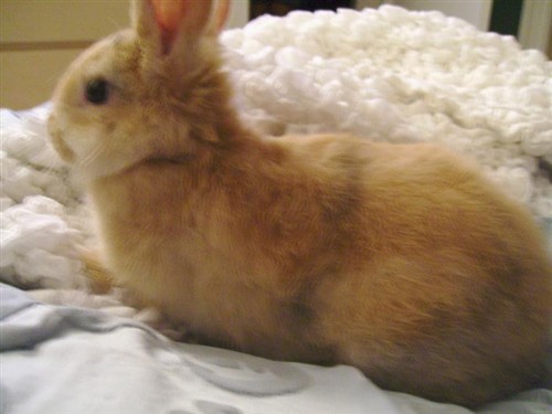 We’ve had India for a bit now and everything is good! We think she’sa mini-rex. We adopted her from a kid across town whos buns got a little to frisky with eachother. Shes golden with tiger stripes! Possibly the coolist looking fur around! I would put pictures, but my camera takes them in super-large mode.