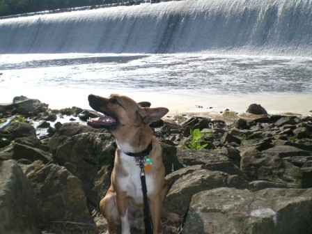 He is such a sweetheart, about a year old, and only 20 lbs.  I’m working with him on basic obedience, but he can already walk nicely on a leash, “sit” and “down” “stay” and “come”.  Since I live in an apartment building, I’ve also taught him to sit and wait at doors until I open them, then I step through and call him through – that way he won’t ever barrel through the door and knock someone over on the other side.  I’ve been on the receiving end of that, and even though I love dogs and even if they’re small, it’s never fun to get bowled over by an out of control dog!