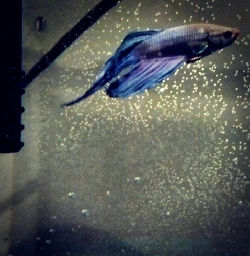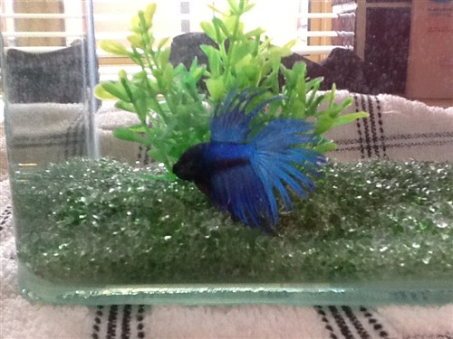 Soooo, I got a fighter fish! I’ll post a picture below, but he’s blue and black, and he’s a crown tail!