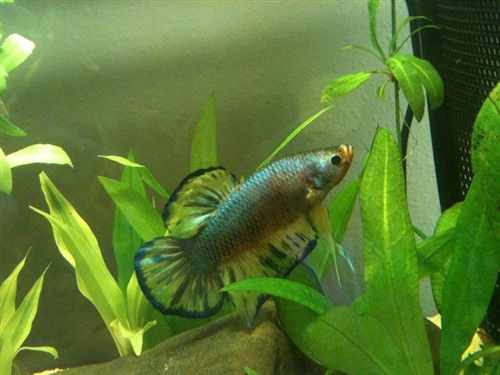 Roku is of Wild Type coloration but you can’t tell from the pic. He looks a lot brighter with his buddies in the community tank. He absolutely LOVES being with other fish.